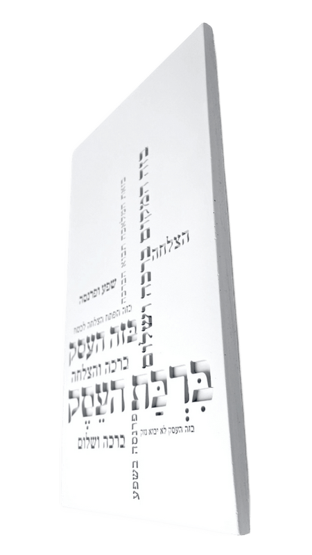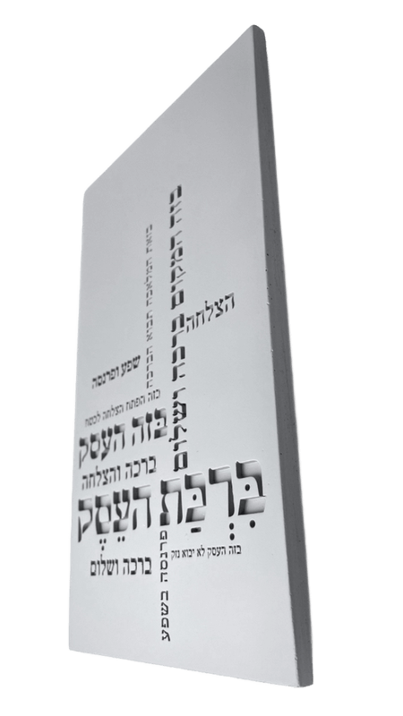 העיצוב המיוחד של התבליט,יוצר מראה תלת-ממדי,עשיר ומודרני. ברכת העסק עשויה מבטון איכותי המגיע בשלושה צבעים לבחירה: אפור קלאסי, לבן נקי או שחור עוצמתי.