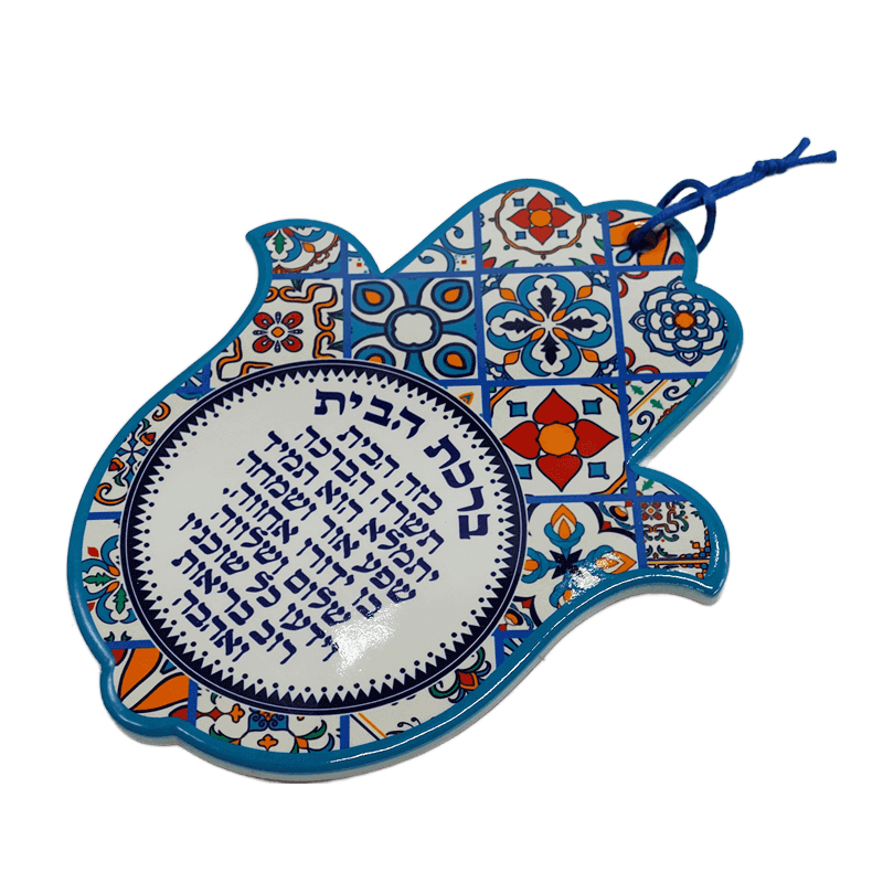 חמסה ברכת הבית בגוונים כחולים-כתומים חמים
