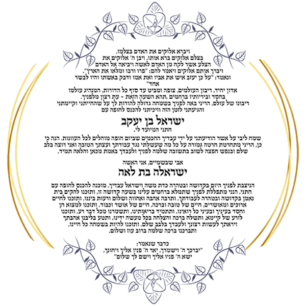 פרטי ברכת כלה עגולה בהתאמה אישית