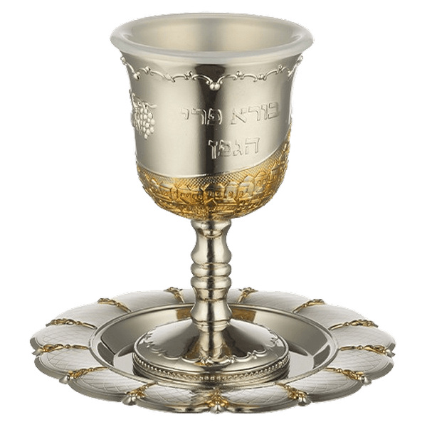 שדרגו את רגע הקידוש עם גביעים המשלבים מתכת איכותית בגימור ניקל מבריק,נגיעות זהב מלכותיות ועיטורים מלאי משמעות.