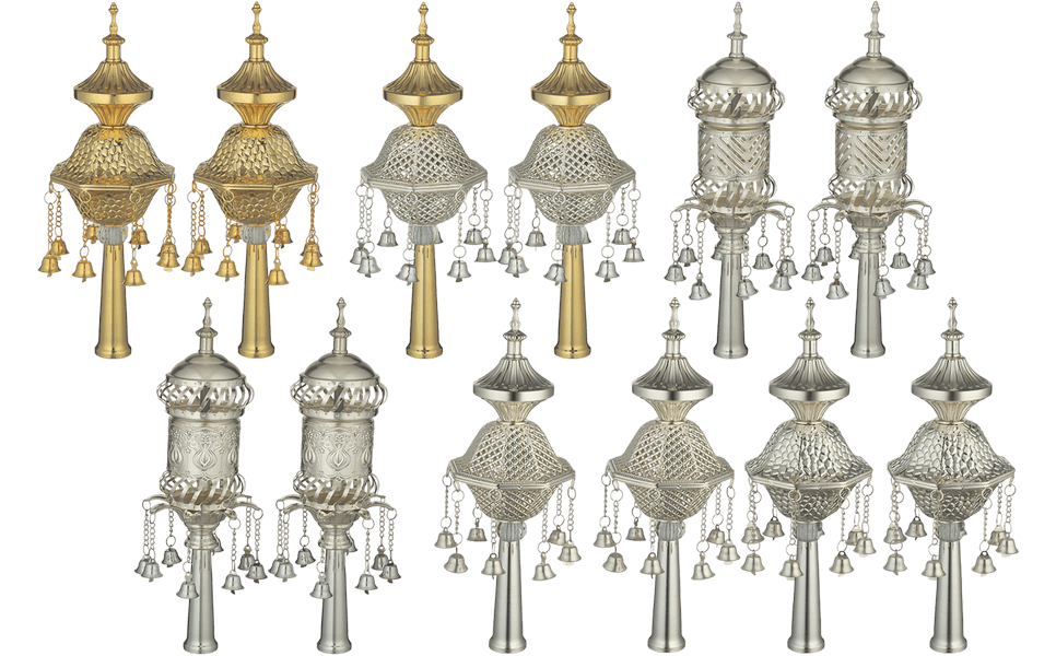 הרימונים מעוטרים בשרשראות ופעמונים עדינים המשמיעים צליל נעים ומרגש בעת הולכת ספר התורה.