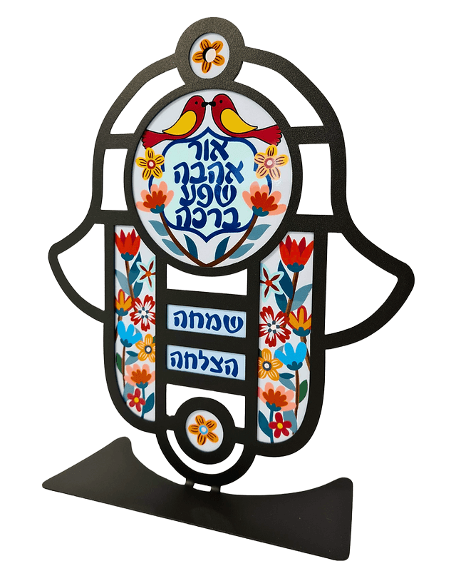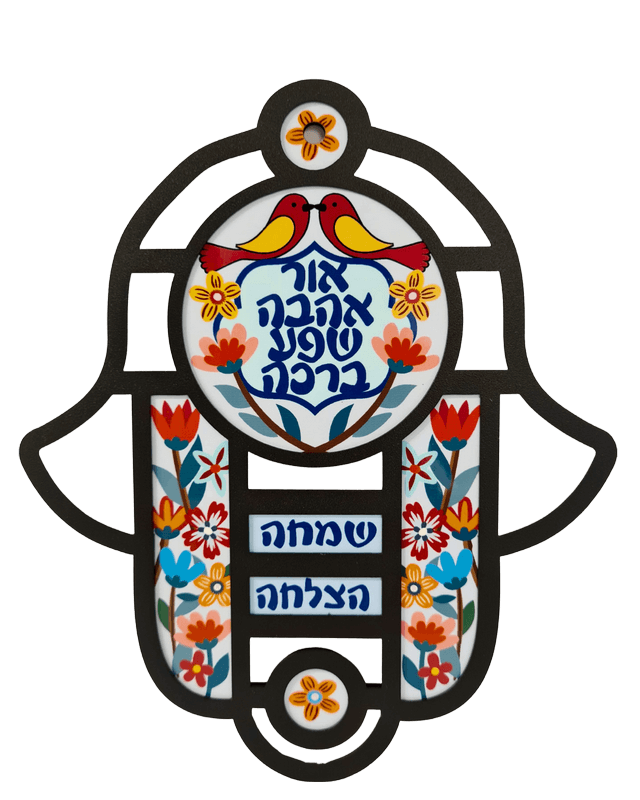 - חמסה מרהיבה ויטראז' מילות ברכה פרחים ציפורים לתלייה ומעמד