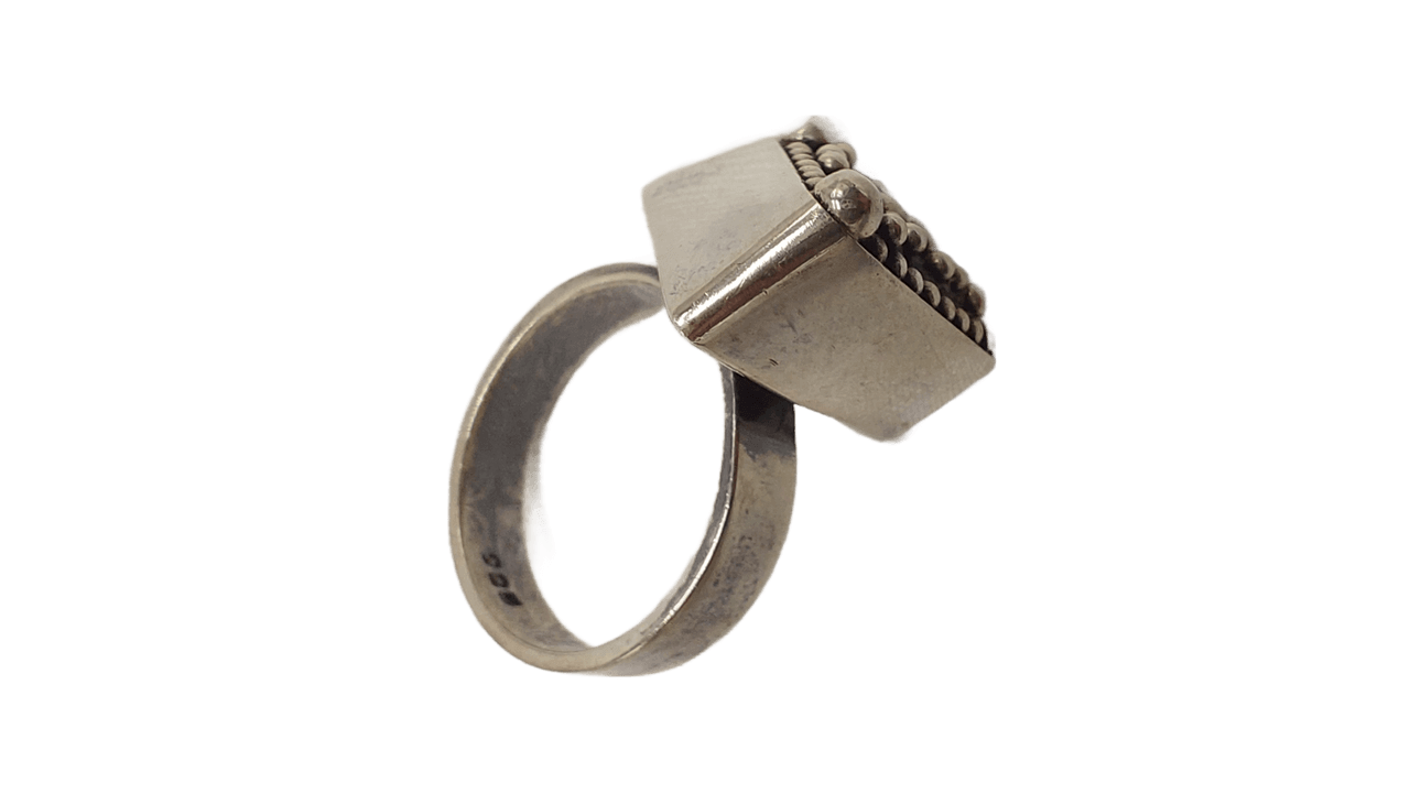 טבעת חותם משולש במילוי כדורי כסף סטרלינג,בעל מראה יחודי