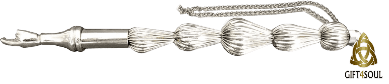 יד לספר תורה עם שרשרת קונוסים מעוצבים לאורך ושרשרת לנוחות אחיזה.