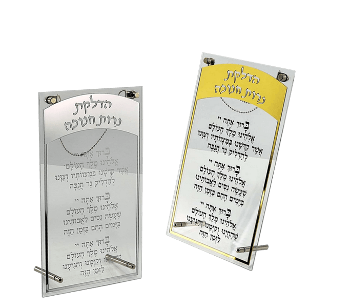ברכה להדלקת נרות חנוכה אקריליק ,המעוצב כפריט דקורטיבי המיועד להצבה לצד החנוכייה.