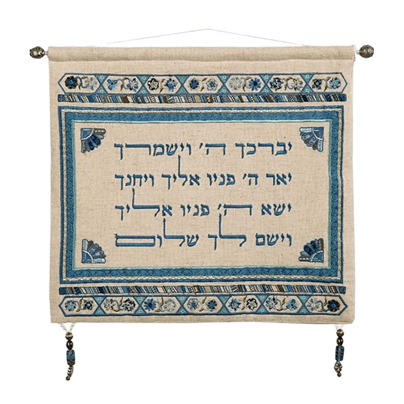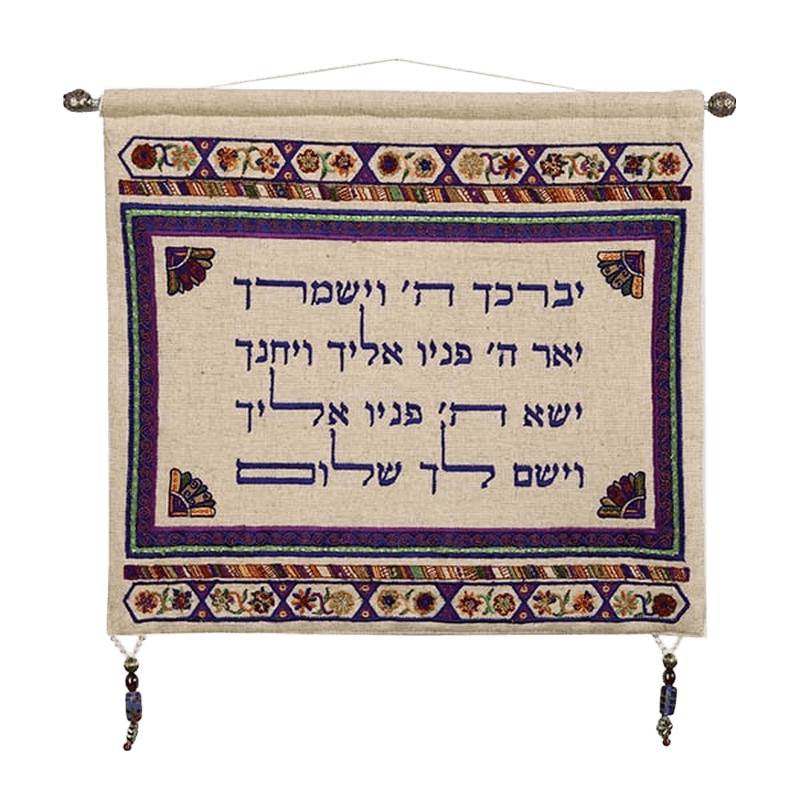 מתלה תליון קיר רקום ברכת הכהנים בד פשתן עיצוב ייחודי דגמים לבחירה