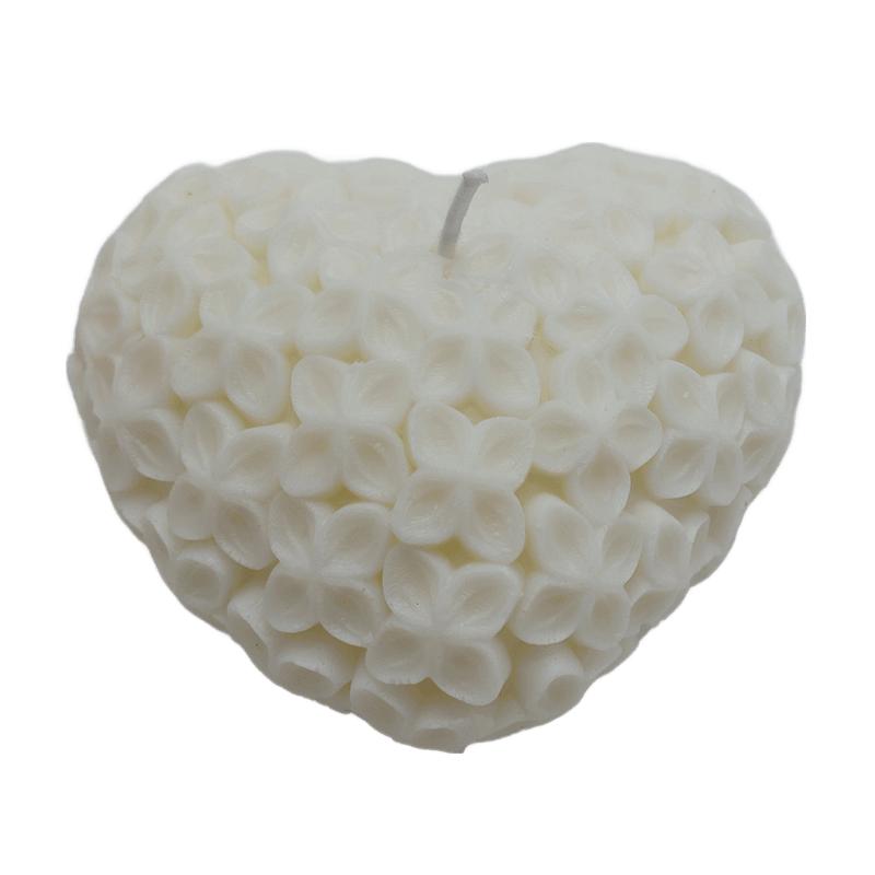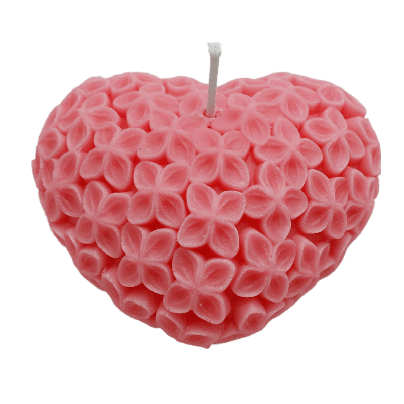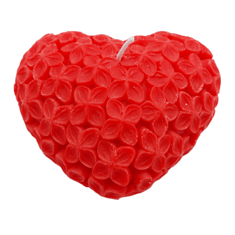 הנרות מעוצבים בצורת לב תלת ממדי בגימור ייחודי המדמה טקסטורת פרחים עדינה ומפוסלת,מה שמעניק להם מראה רומנטי ואלגנטי במיוחד.