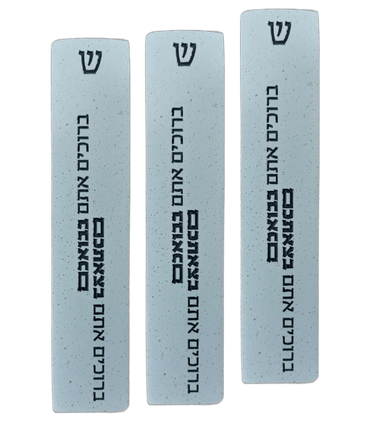 בתי המזוזה מגיעים בגימור לבן מנוקד יוקרתי, עם הדפסה בשחור של הברכה: