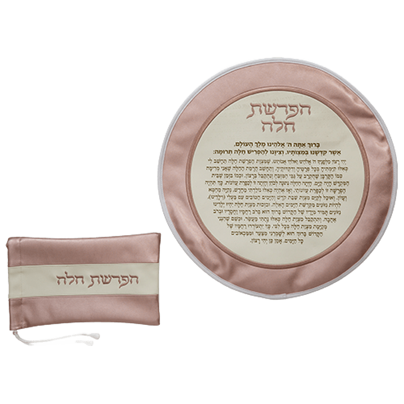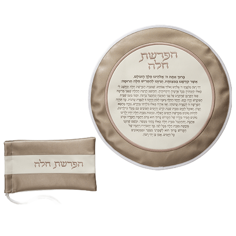 סט כיסויים יוקרתיים דמוי עור להפרשת חלה השימוש בצבעים רכים וניטרליים יוצר מראה עדין ואלגנטי מעולה לטקס הפרשת חלה.