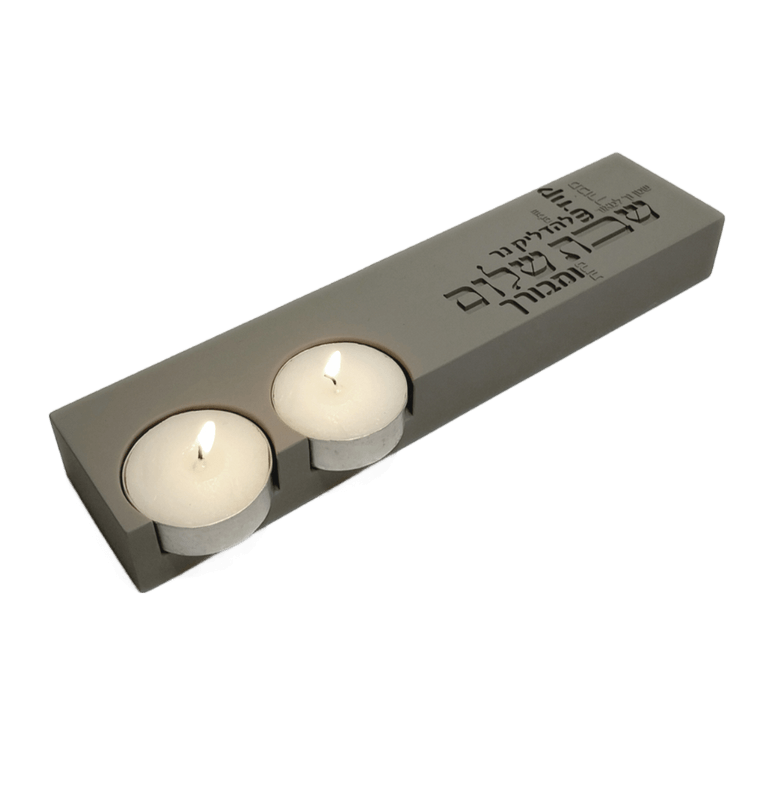 פמוטי בטון דגם פס שבת מאירה בעל מקום ייעודי לשני נרות