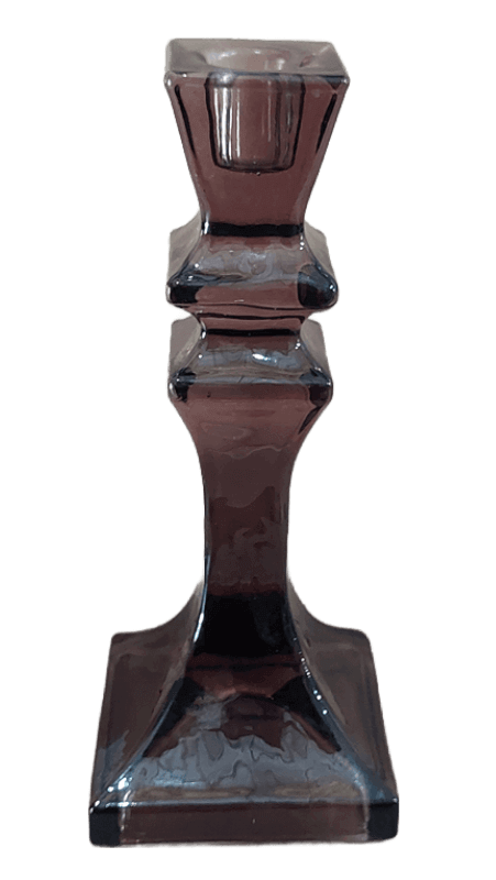 פמוט מרובע המשלב עיצוב מודרני גיאומטרי ואלגנטיות יוקרתית,עשוי זכוכית בגוון סגול עמוק מרהיב.