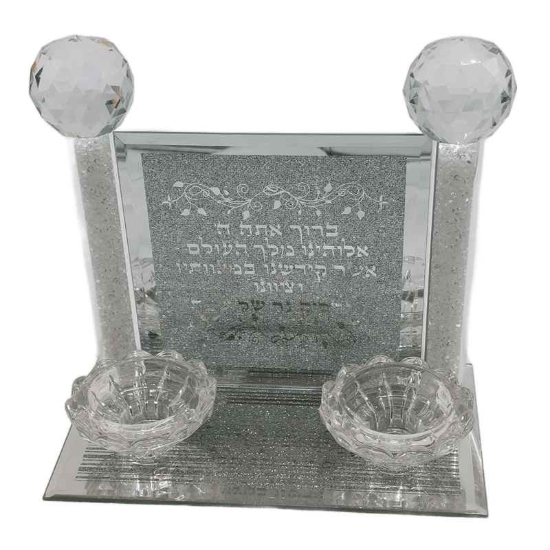 סט פמוטים זוגי ומפואר עשוי זכוכית/קריסטל ,המשלב עיצוב אלגנטי וקדושה והופך את הדלקת נרות השבת לחוויה מרגשת ומכובדת.
