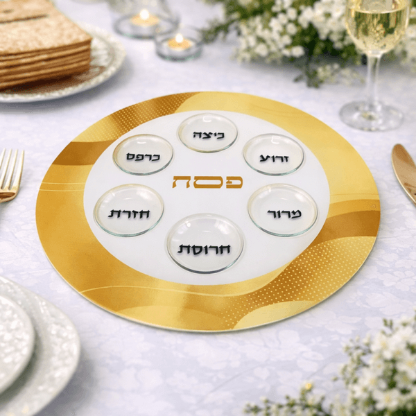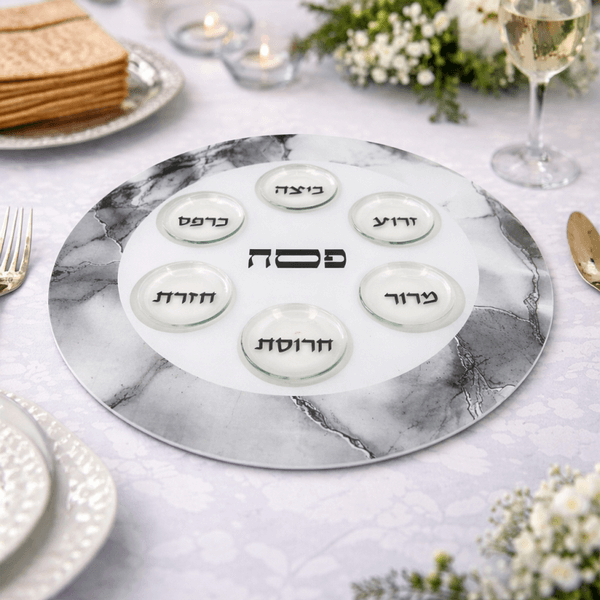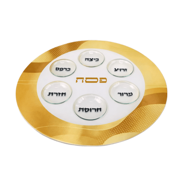 צלחץ לברכות חג הפסח לשולחן החג מזכוכית בגודל 33 ס"מ בדגמים לבחירה