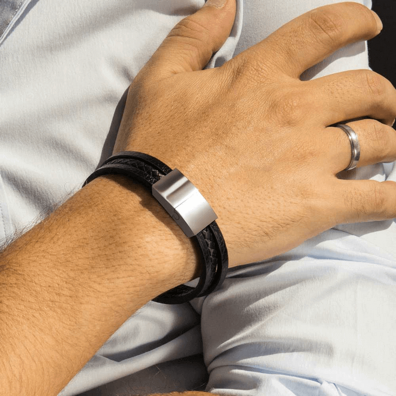 צמיד עור שחור לגבר נוכחות עוצמתית בטאץ' של סטייל