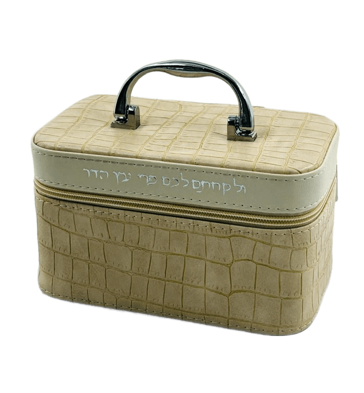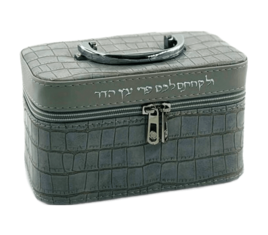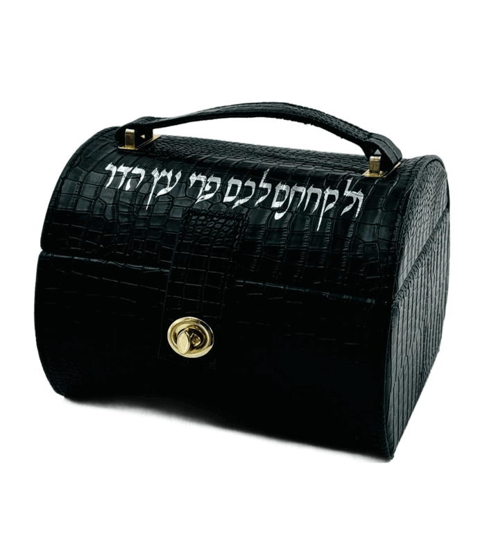 הידית מאפשרת נשיאה נוחה, והסוגר שומר על הקופסה סגורה ובטוחה. הכיתוב מעניק לה נופך יהודי ומסורתי.