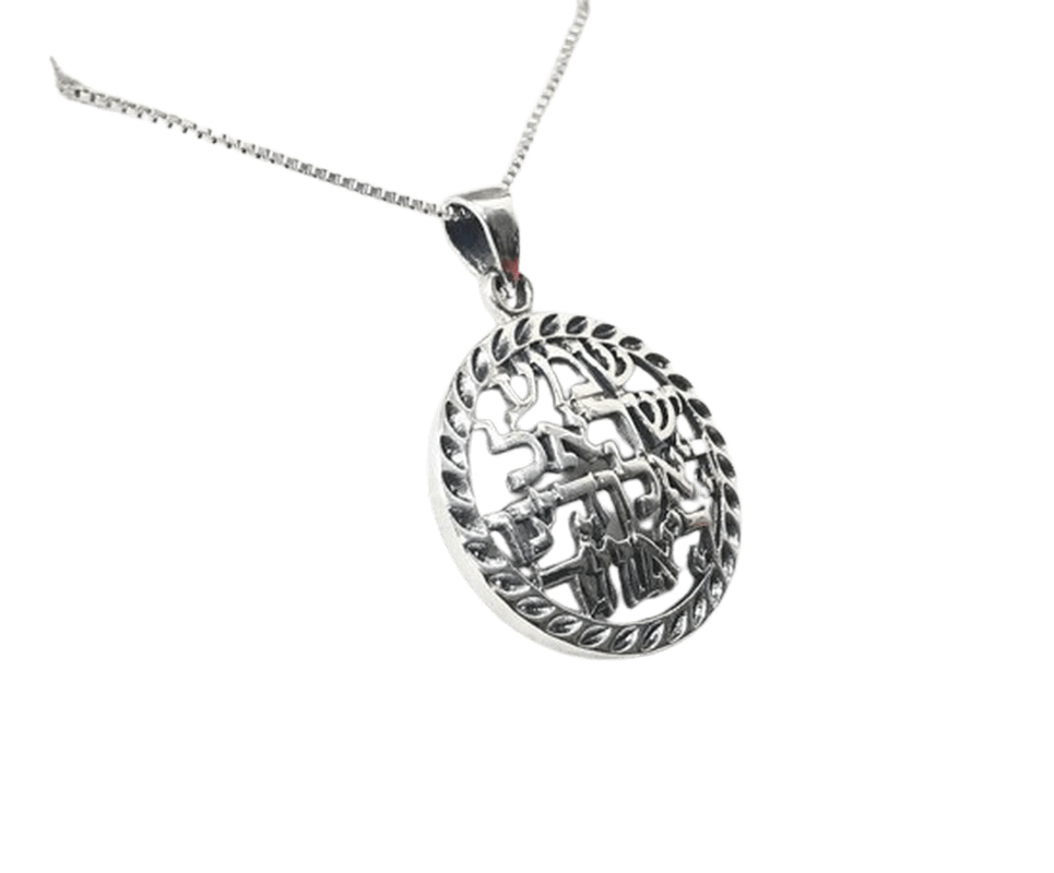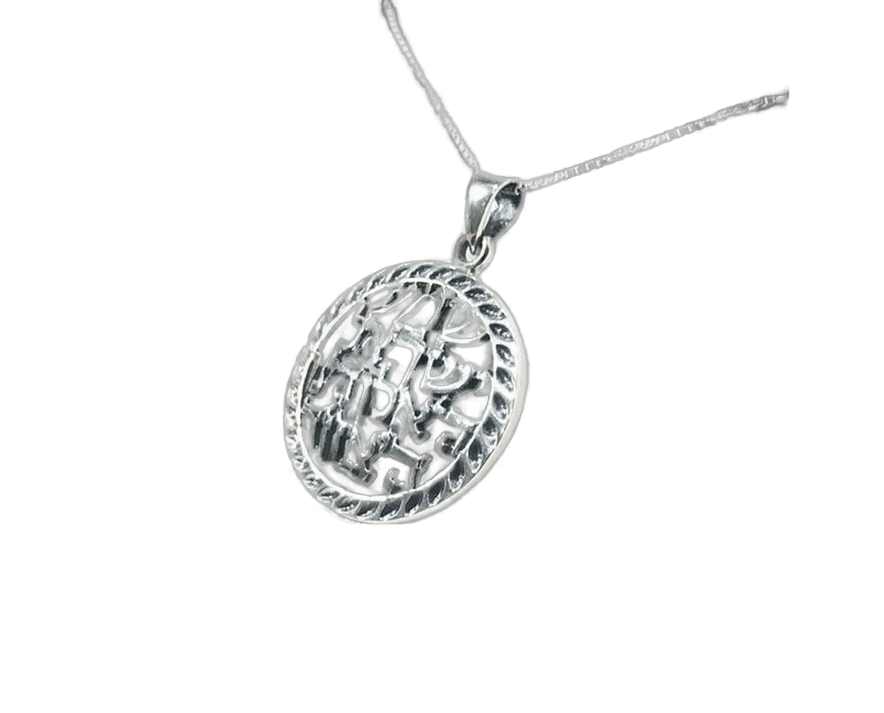 שרשרת "שמע ישראל" מכסף סטרלינג 925 אמיתי,בעיצוב עגול בקוטר 2.3 ס"מ.