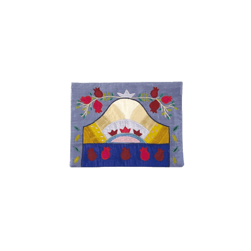 תיק תפילין אפליקצייה רימונים עיצוב מרהיב עשוי בד איכותי לשמירה על קדושת התפילין, עם סגירה נוחה לשימוש יומיומי או לשבתות וחגים.